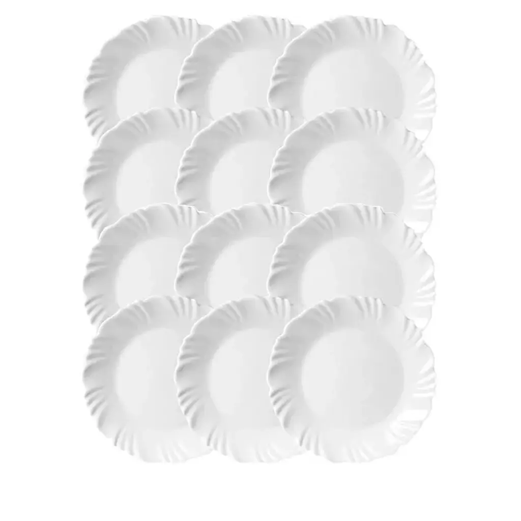 Kit 12 Prato Fundo Nadir Duralex Vidro Pétala Branco Opaline